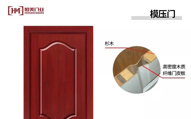 模压门:一般常用密度板在高温条件下经模具压至而成的。这样的门可以做各种凹凸图案,但是其款式是根据模子来的,只有什么样的模子才可以压出什么样的门。