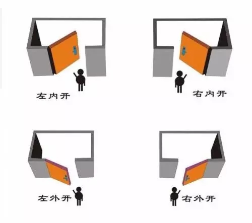 左内开门:人站在门外向内推,转动的门轴在门左边;